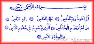 1. De ki: «insanlığın Rəbbinə sığınıram» 2. İnsanlığın Sahibinə (Məlik); 3. İnsanlığın İlahına; 4. Sinsi vəsvəsə qaynağının şərindən; 5. O ki, davamlı şəkildə insanların qəlblərinə fısıldayır. 6. Görünməyən və görünən türündən (cin və insan)
